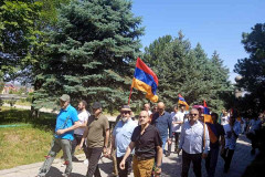 Մայր Աթոռի բակը բազմամարդ է. մի կողմում Վեհափառի աջակիցներն են, մյուսում՝ նրա հեռացումը պահանջողները
