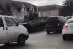 Ինչպես են տանկերը ճխլելով անցնում քաղաքացիական մեքենաների վրայով