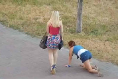 Հարբած աղջիկը «չորեքթաթ» փորձում է տուն հասնել (տեսանյութ)