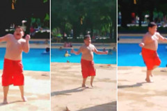 Երեխայի զվարճալի պարը Կուբայի հանրային լողավազաններից մեկում