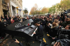 Փարիզի հարձակման ենթարկված թատրոնի դիմաց դաշնակահարը կատարում է Ջոն Լենոնի Imagi...