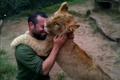 Առյուծի ձագերը հրաժեշտ են տալիս տղամարդուն (տեսանյութ)