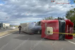 Արարատում կցորդիչով բեռնատարն անվադողի պայթելու հետևանքով դուրս է եկել հանդիպակա...