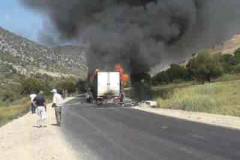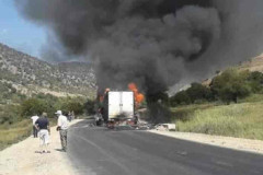 Երևան–Մեղրի ճանապարհին բեռնատար է այրվում․ ճանապարհը երկկողմանի փակ է (ֆոտո)