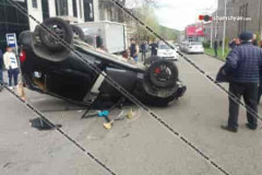 Գորիսում բախվել են 07-ն ու Mitsubishi Pajero io-ն. վերջինս գլխիվայր շրջվել է