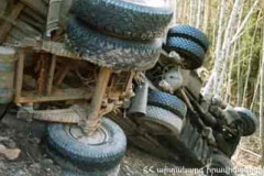 Գոգավան-Գուգութի ավտոճանապարհին բեռնատար է շրջվել․ անցակետ տանող ավտոճանապարհը փ...