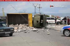 Շիրակի մարզում բախվել են Toyota Land Cruiser-ն ու բեռնատար КамАЗ-ը․ վերջինս շրջվ...