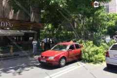 Ոսկու շուկայի մոտ հաստաբուն ծառի ճյուղը պոկվել եւ ընկել է ընթացող Volkswagen-ի վ...