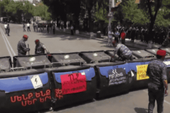 Ոստիկանները քանդում են աղբամաններով կառուցած պատնեշը