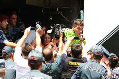 Ցուցարարները ոստիկանության օգնությամբ իրենց իրերը տեղափոխում են Ազատության հրապա...