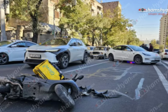 Երևանում բախվել են «Tesla»-ն ու մոպեդը. վերջինը կողաշրջվել է, մոպեդավարը տեղափոխ...