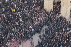 Մայր Աթոռի բակը բազմամարդ է. մի կողմում Վեհափառի աջակիցներն են, մյուսում՝ նրա հե...