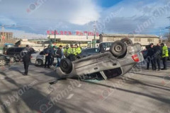 Արգավանդի խաչմերուկում մեքենաներ են բախվել են, դրանցից մեկը գլխիվայր հայտնվել է ...