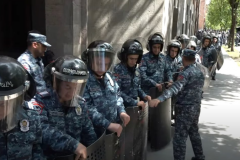 Ոստիկանները՝ վահաններով ու մահակներով, շղթա են կազմել կառավարության շենքի շուրջ ...