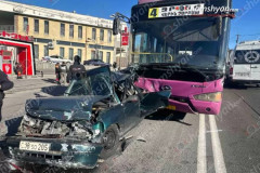Խոշոր վթար՝ Երևանում. սգո սրահի դիմաց բախվել են ավտոբուսը, 2 Opel, Mitsubishi բե...