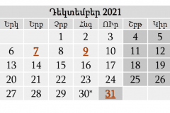Դեկտեմբերին կլինի 9 ոչ աշխատանքային օր