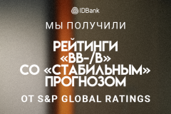 Рейтинговое агентство S&P Global Ratings присвоило ЗАО «АйДи Банк» долгосрочный рейтинг «BB-» и краткосрочный рейтинг «B» со «стабильным» прогнозом