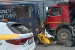 Բեռնատարը՝ տաքսին մխրճել է ավտոբուսի մեջ․ Սարսափելի կադրեր դեպքից