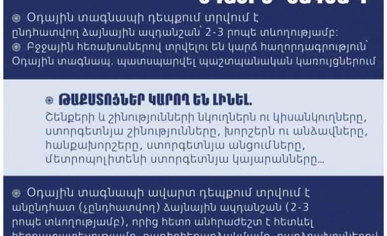 Անհրաժեշտության դեպքում պետք է պատրաստ լինենք «Օդային տագնապ» ազդանշանին և պահպանենք անվտանգության անհրաժեշտ կանոնները: