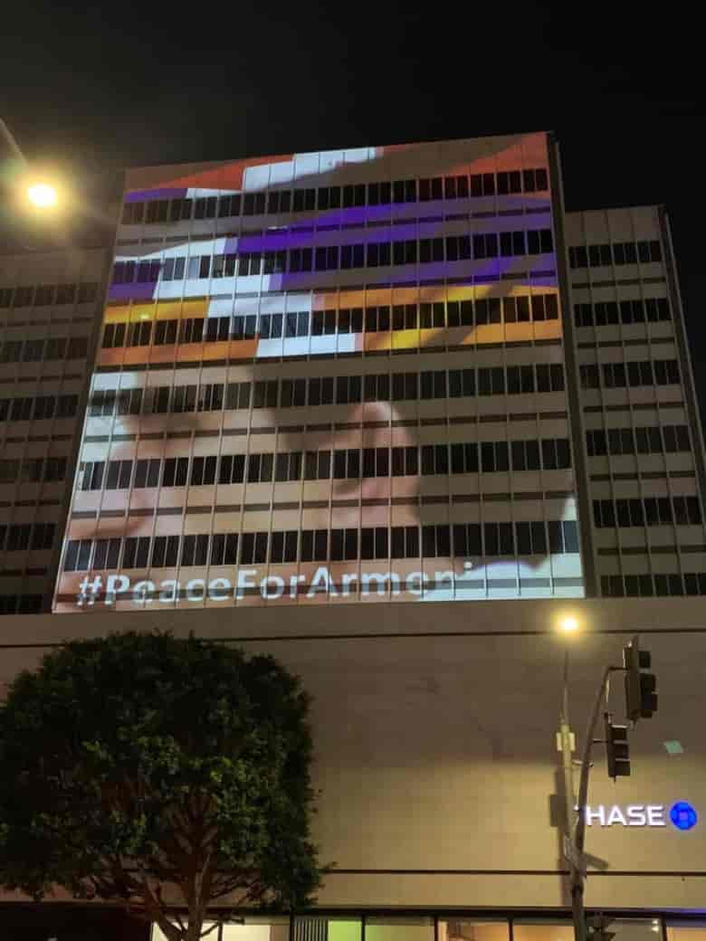 Ուշադրության կենտրոնումԱրցախի դրոշը`Peace for Armenians գրությամբ, լուսարձակվել է Լոս Անջելեսում Թուրքիայի հյուպատոսության շենքի վրա։ Այդ մասին վկայող լուսանկարներ են հայտնվել ֆեյսբուքյան տիրույթում։ Ավելի վաղ վարչապետ Նիկոլ Փաշինյանը լուսանկարներ էր հրապարակել Լոս Անջելեսում անցկացված բազմամարդ ակցիայից։