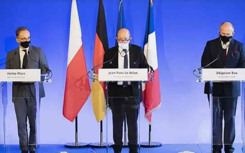 Այս մասին ասված է ԵՄ երեք երկրների ՝ Գերմանիայի, Ֆրանսիայի և Լեհաստանի արտաքին գործերի նախարարների հայտարարության մեջ, որը հրապարակվել է հոկտեմբերի 15-ին բանակցություններից հետո:
