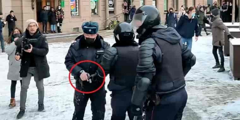 Ուշադրության կենտրոնումՍանկտ Պետերբուրգի ոստիկանության աշխատակիցը Սենայի հրապարակում բողոքի ակցիայի ժամանակ հանել է ծառայողական ատրճանակը և սեղմել է պտուտակի վրա, որպեսզի կարողանա այն կիրառել: Սակայն այնուամենայնիվ նա զենքը չի կիրառել։