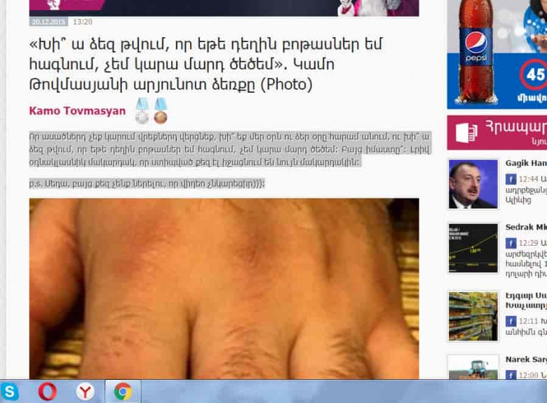 Սույն թվականի դեկտեմբերի 20-ին բլոգգեր Կամո Թովմասյանն իր ֆեյսբուքյան միկրոբլոգում հրապարակել է լուսանկար և մակագրել.