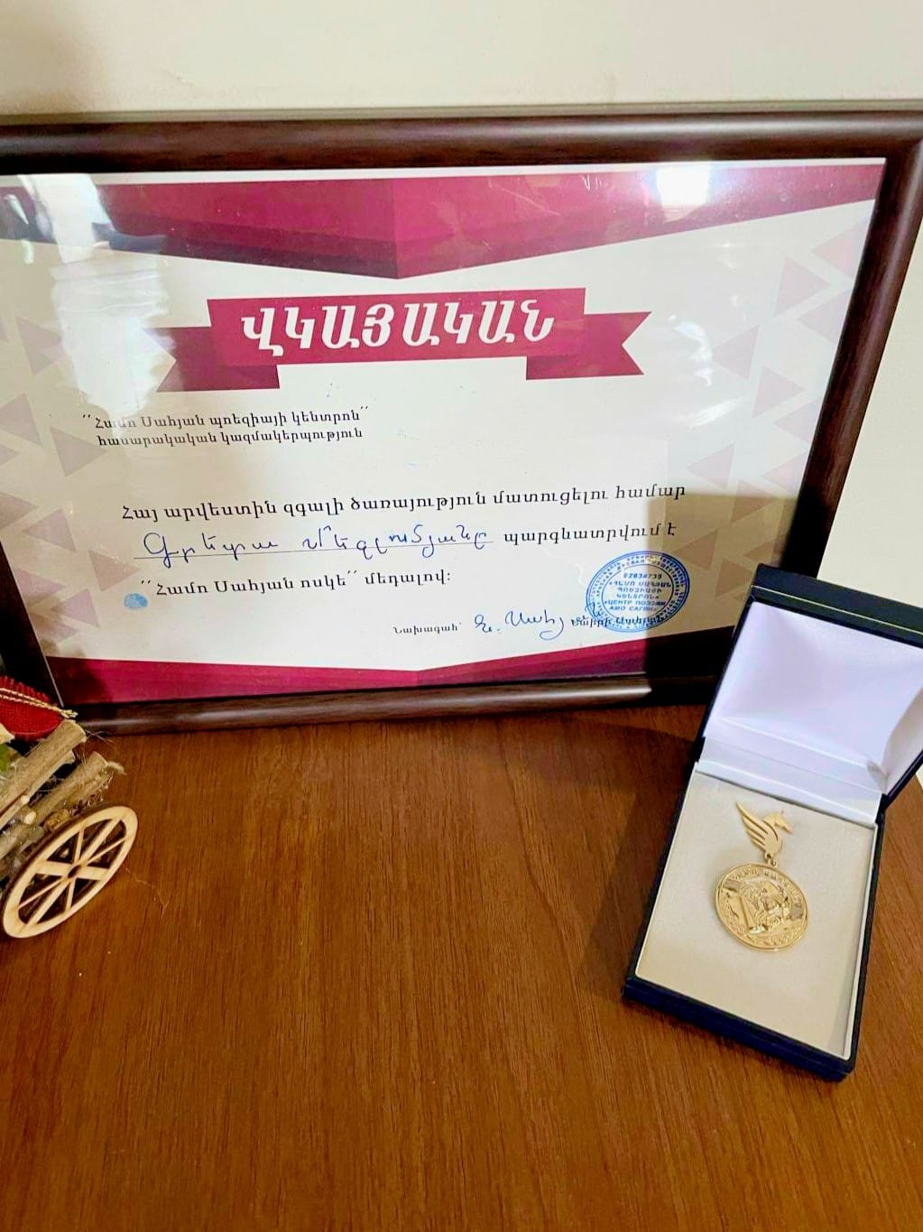 «Երեկ մայրս՝ Գրետա Մեջլումյանը, անձամբ Համո Սահյանի որդու կողմից ստացել է Համո Սահյանի անվան ոսկե մեդալ։ Շնորհակալություն։ Այս գաղջ աշխարհում, երբեմն, արդարություն լինում է»,- գրել է նա: