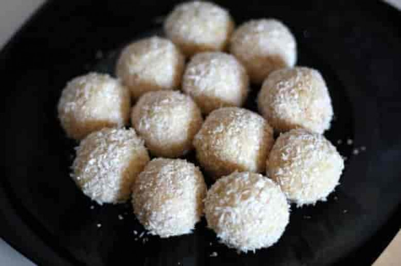 Սառած կրեմից պատրաստել փոքրիկ գնդիկներ, որոնցից յուրաքանչյուրի մեջ մեկական նուշ մտցնել: Սա արդեն պատրաստի միջուկն է: Մնում է միայն թաթախել այն կոկոսի փաթիլների մնացած մասի մեջ: