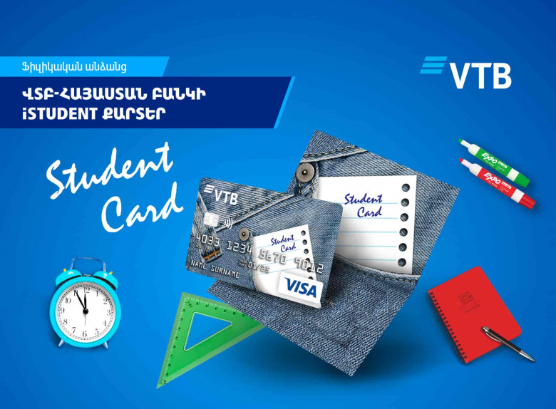 ՀասարակությունՎՏԲ-Հայաստան Բանկը, միջազգային Visa վճարահաշվարկային համակարգի հետ համատեղ, մեկնարկել է iStudent քարտը, որը նախատեսված է միջին մասնագիտական և բարձրագույն ուսումնական հաստատությունների ուսանողների համար: