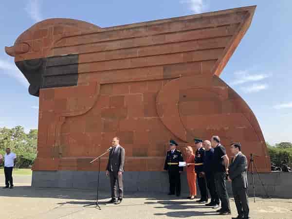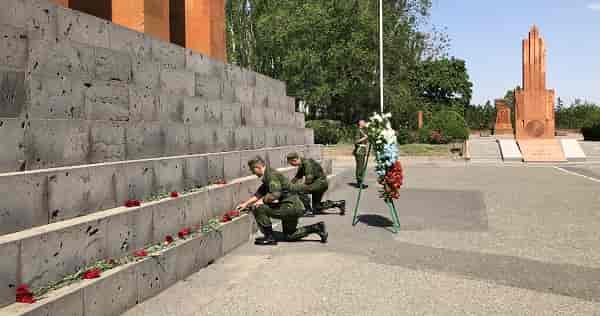 Մինչև քննարկումը մասնակիցները ծաղկեպսակ և ծաղիկներ դրեցին Սարդարապատի հերոսամարտի հուշահամալիրի մոտ։