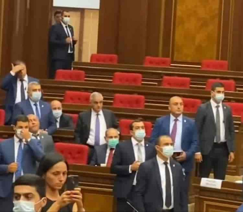 Խորհրդարանում երեկ տեղի ունեցած ծեծկռտուքին ԱԺ նիստերի դահլիճում ներկա Նիկոլ Փաշինյանը հետեւում էր անդրդվելի տեսքով՝ թիկնապահներով շրջապատված, տեղում նստած եւ ժպիտով։ Ընդդիմադիր պատգամավորներն ասում էին, որ հատկապես երկրորդ միջադեպը տեղի է ունեցել նրա անմիջական հրահանգավորմամբ։