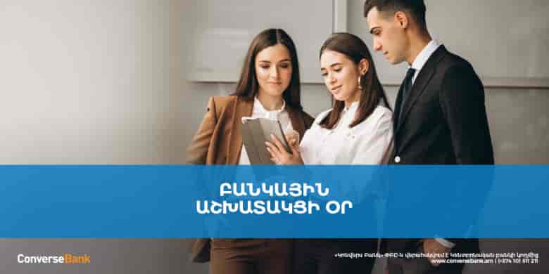 ՀասարակությունՆոյեմբերի 22-ին նշվում է Բանկային աշխատողի մասնագիտական տոնը: Կոնվերս բանկը շնորհավորում է համակարգի աշխատակիցներին տոնի կապակցությամբ եւ մաղթում հաջողություններ կյանքի ցանկացած ասպեկտում: