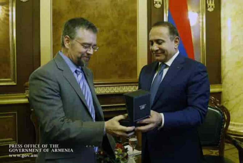 Հանդիպման ավարտին Հովիկ Աբրահամյանն արդյունավետ համագործակցության համար Դևիդ Դոուլին պարգևատրել է ՀՀ վարչապետի անվանական ժամացույցով և նրան մաղթել նորանոր հաջողություններ: