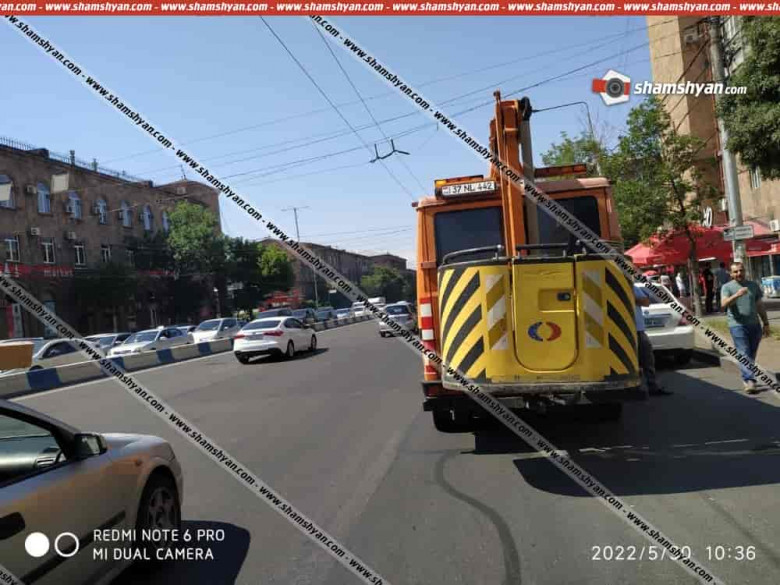 Արշակունյաց պողոտայում տրոլեյբուսի էլեկտրալարերը պոկվել ու վնասել են մի քանի ավտոմեքենաներ