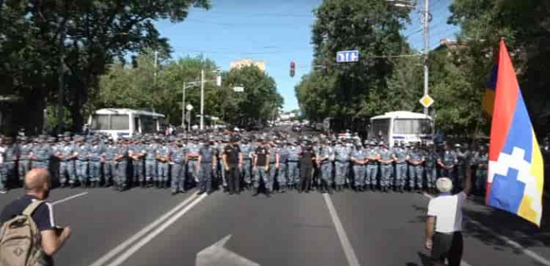 Այս պահին ոստիկանական շղթան թույլ չի տալիս ընդդիմադիրներին, որպեսզի շարունակեն իրենց երթը դեպի Բաղրամյան 26։