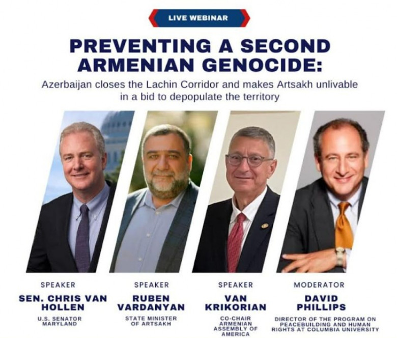 Սենատոր Քրիս Վան Հոլենն իր խոսքում նշել է, որ ականատեսն ենք լինում Լեռնային Ղարաբաղի նկատմամբ Ադրբեջանի ագրեսիվ քաղաքականության հերթական դրվագին: «50 օրից ավելի է՝ Ադրբեջանը Արցախի ժողովրդին շրջափակման մեջ է պահում՝ զրկելով նրանց սննդից, դեղորայքից և ամենօրյա անհրաժեշտության այլ ապրանքների մատակարարումից: Շրջափակվածների թվում են 30000 երեխաներ, 20000 տարեցներ և 9000 հաշմանդամություն ունեցող մարդիկ: Մենք օր-օրի խորացող հումանիտար ճգնաժամի ականատեսն ենք դառնում: Մենք չենք կարող չբարձրաձայնել այս չարամիտ գործողությունների մասին», - նշել է նա: