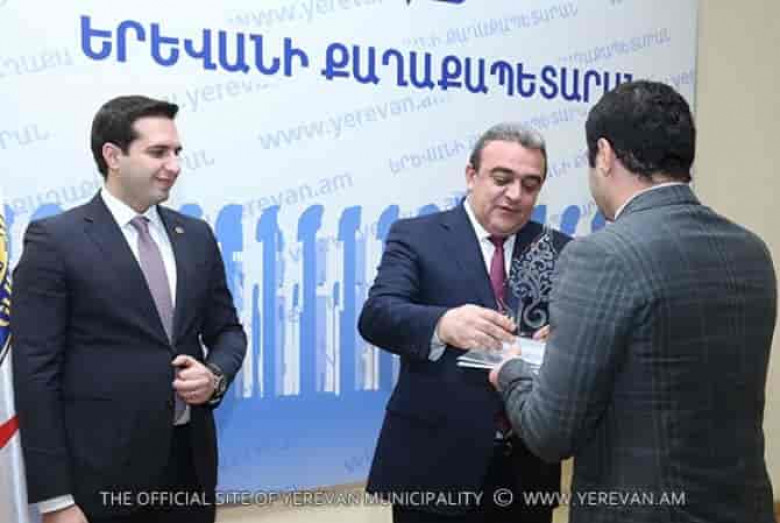 ՀասարակությունԵրևանի քաղաքապետի տեղակալ Դավիթ Օհանյանը Երևանի քաղաքապետի պատվոգրեր է հանձնել «Ամենագեղեցիկ տոնական ձևավորում» ամենամյա մրցույթի հաղթողներին: Մրցույթը հայտարարվում է Երևանի քաղաքապետարանի կողմից և անցկացվում է Ամանորի և Սուրբ Ծննդյան տոների առիթով:
