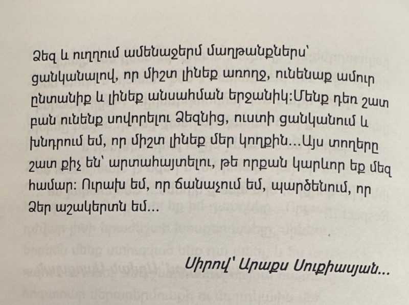 Շնորհակալ եմ, որ կաս: Սիրում եմ, հավատում ու հպարտանում: Շնորհավոր տարեդարձդ: