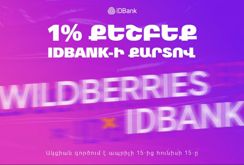 ՀասարակությունIDBank-ը սկսում է բացառիկ արշավ Wildberries հարթակում առցանց գնումների սիրահարների համար։ Այս տարվա ապրիլի 15-ից սկսած կատարե՛ք առցանց գնումներ Wildberries-ում, վճարե՛ք IDBank-ի քարտերով և ստացե՛ք մինչև 1% քեշբեք գնումների դիմաց։