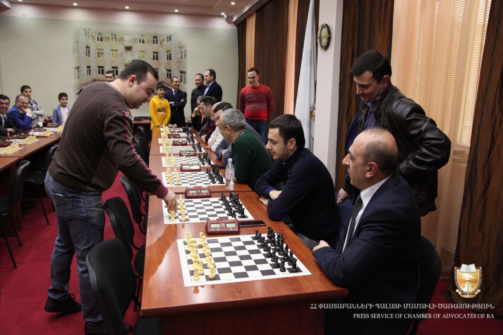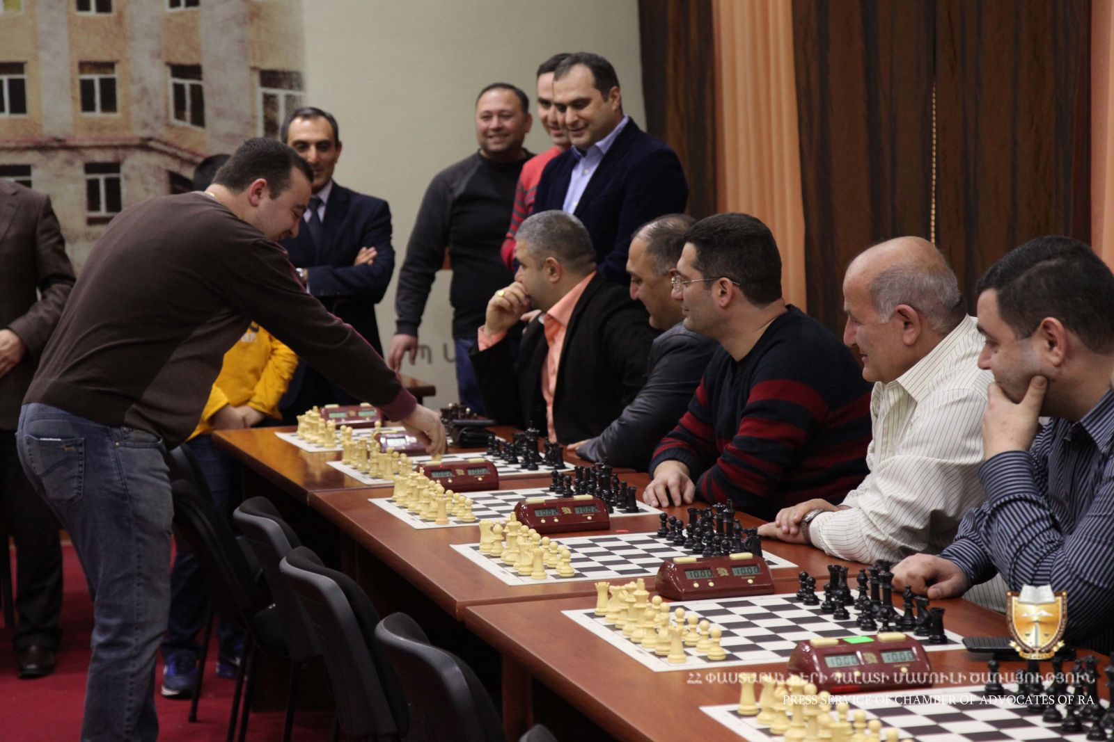 Համաժամանակյա խաղի ընթացքում 15 փաստաբաններից 13-ը պարտվել են, իսկ երկուսը (փաստաբաններ Արթուր Ալիխանյանը և Սուրեն Պետրոսյանը)՝ գրանցել են ոչ ոքի: Առաջնությունը վարել է միջազգային կարգի մրցավար Վահագն Խաչատրյանը: