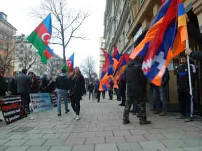 Ադրբեջանցի ցուցարարներին Շվեդիայի հայ համայնքը դիմավորել է Արցախի դրոշներով