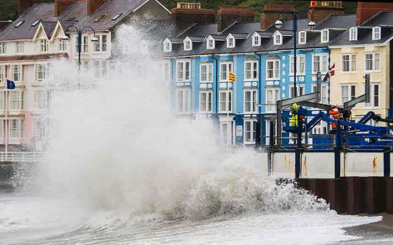 Հսկա ալիքները կուտակվում են Աբերիստուիտ քաղաքի Քարդիգան Բեյ ափի մոտ և հարվածվում նավահանգստի պատնեշներին։ Քաղաքի որոշ հատվածներում հորդառատ անձրևի հետ մեկտեղ քամու ուժգնացումները հասել են 125 կմ/ժ արագության։