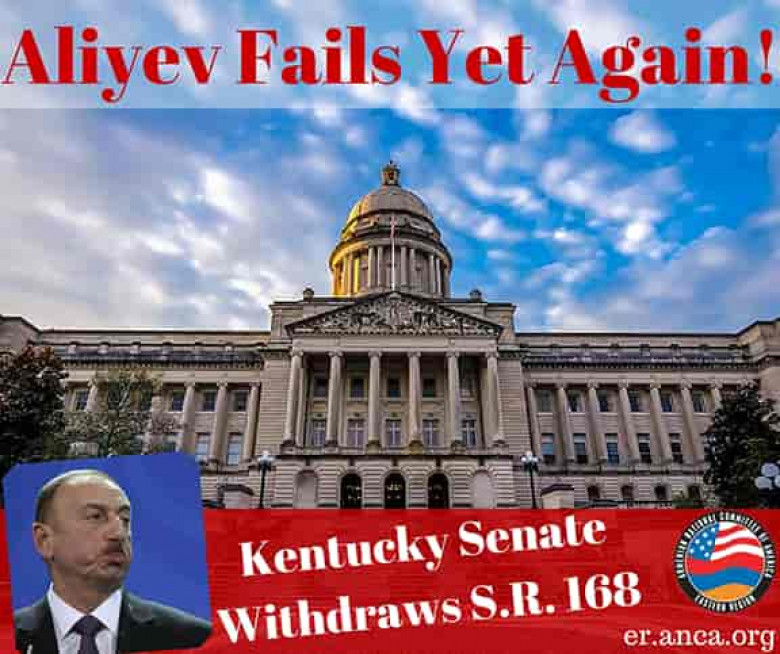 Ունենալով սրա քաջ գիտակցումը, ԱՄՆ հայ համայնքը, Հայ Դատի արևելյան շրջանի մեր պրոֆեսիոնալ լոբբիստներն այսօր կարողացել են հասնել նրան, որ Քենտակիի օրենսդիրը չեղյալ է հայտարարել իր իսկ՝ օրեր առաջ ընդունած հակահայկական որոշումը: