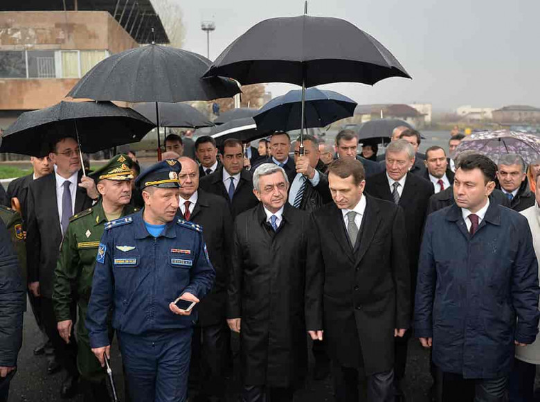 ՔաղաքականությունՆախագահ Սերժ Սարգսյանը Հավաքական անվտանգության պայմանագրի կազմակերպության խորհրդարանական վեհաժողովի (ՀԱՊԿ ԽՎ) խորհրդի նախագահ, ՌԴ Դաշնային ժողովի Պետական դումայի նախագահ Սերգեյ Նարիշկինի, խորհրդի արտագնա նիստի մասնակից խորհրդարանական պատվիրակությունների ներկայացուցիչների, ՀԱՊԿ գլխավոր քարտուղար Նիկոլայ Բորդյուժայի, ՀՀ պաշտպանության նախարար Սեյրան Օհանյանի և Հայաստանի ու Ռուսաստանի պաշտպանական գերատեսչությունների համապատասխան պաշտոնատար անձանց ուղեկցությամբ այսօր այցելել է մայրաքաղաքի «Էրեբունի» օդանավակայանում տեղակայված Հայաստանի և Ռուսաստանի համատեղ ռազմաօդային ավիաբազա: