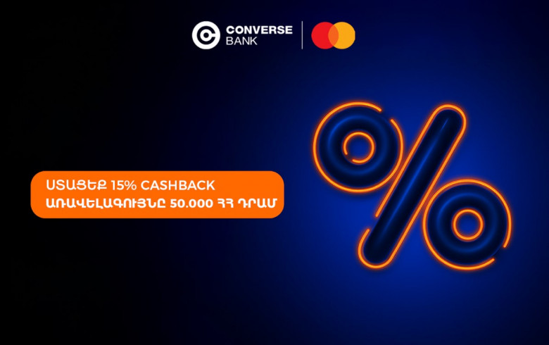 • Գործարքի գումարի 15%-ի՝ մինչև 50․000 ՀՀ դրամի/համարժեք արտարժույթի չափով քեշբեք Կոնվերս Բանկի կողմից,