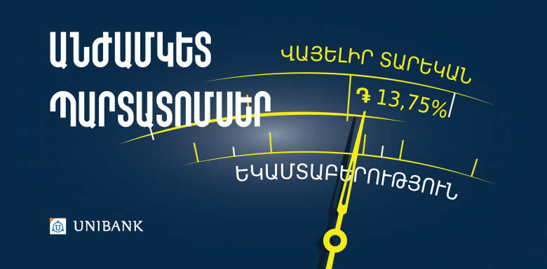 ՀասարակությունՀաշվի առնելով ներդրողների մեծ հետաքրքրությունն ու առաջին թողարկումների հաջող տեղաբաշխումը՝ Յունիբանկը հայտարարում է ՀՀ դրամով անժամկետ պարտատոմսերի նոր թողարկման մասին։ Անժամկետ պարտատոմսերի նոր թողարկման ծավալը կազմում է 3 միլիարդ ՀՀ դրամ, իսկ արժեկտրոնային տարեկան տոկոսադրույքը՝ 13.75%։
