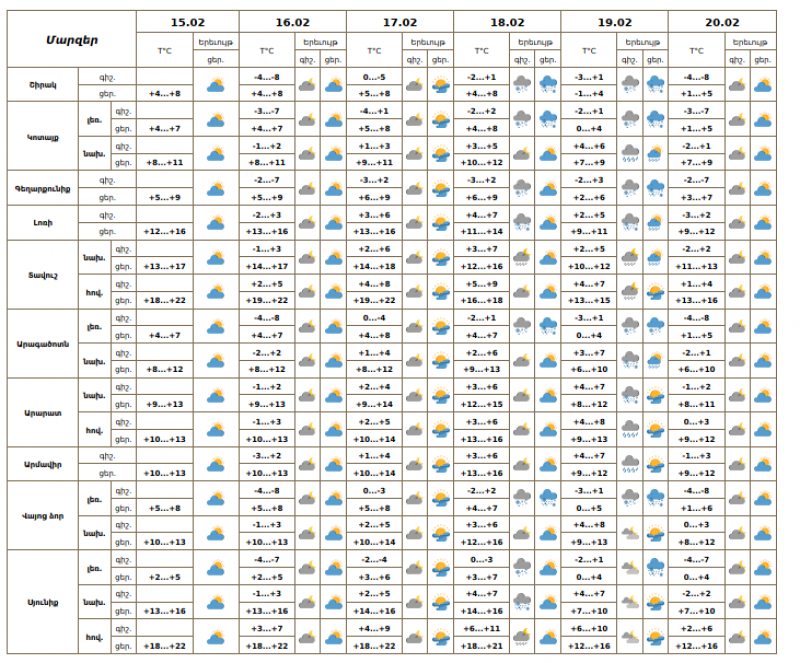 Օդի ջերմաստիճանը փետրվարի 15-ի ցերեկը, 16-18-ին ողջ հանրապետությունում աստիճանաբար կբարձրանա ևս 2-4 աստիճանով։
