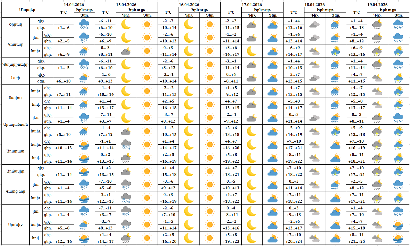 ԱՌԱՋԻԿԱ 5 ՕՐՎԱ ԵՂԱՆԱԿԻ ԿԱՆԽԱՏԵՍՈՒՄ (14-19.04.2026թ.)