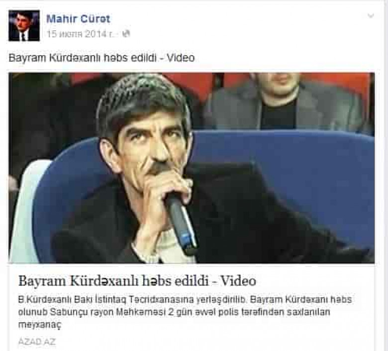 Նկարում Բայրամ Քյուրդախանլիի լուսանկարն է` ձերբակալման մասին ազդարարող լուրով` վերցված Մահիր Ջուրաթի ֆեյսբուքյան էջից: